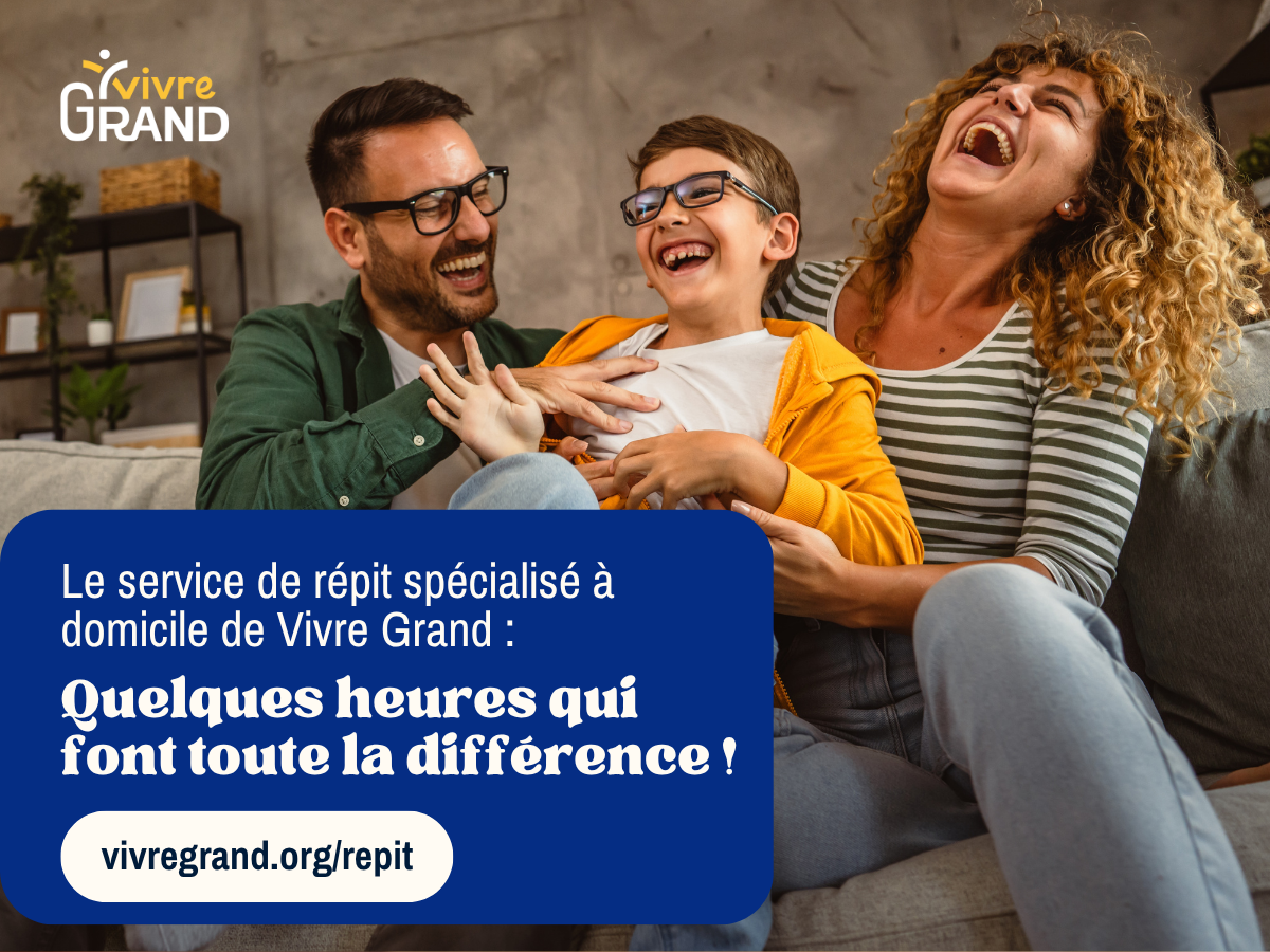 Vivre Grand a pour mission de favoriser la qualité de vie, l’inclusion sociale et le mieux-être des personnes vivant avec une déficience intellectuelle, des personnes autistes et de leurs proches.