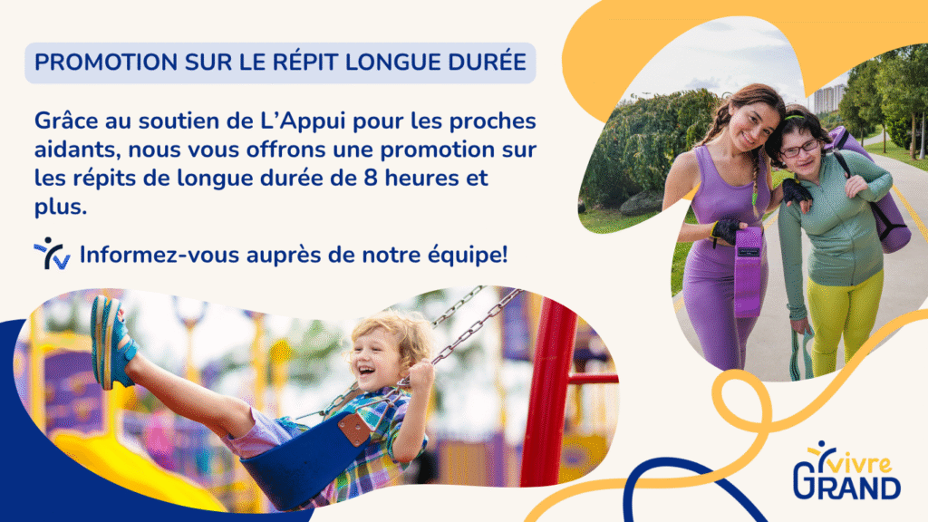 Suite aux résultats prometteurs de la formule expérimentée, le conseil d’administration de Vivre Grand a décidé d’implanter le service Répit spécialisé à domicile inspiré du projet de recherche Oasis+ au bénéfice des personnes présentant une DI ou un TSA et de leurs proches.